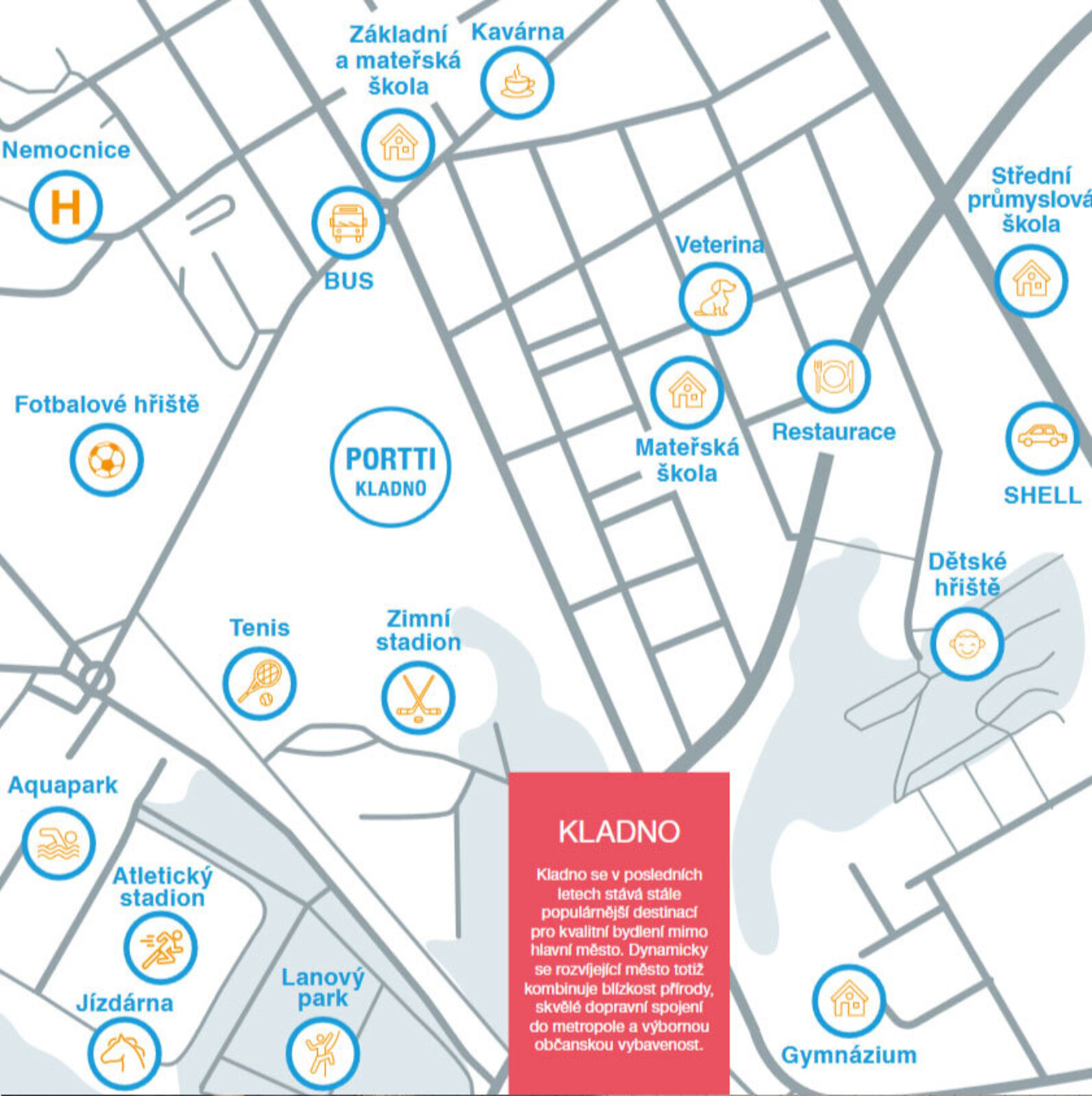Pokud preferujete vlak, zastávka „Kladno město“ je vzdálená jen
